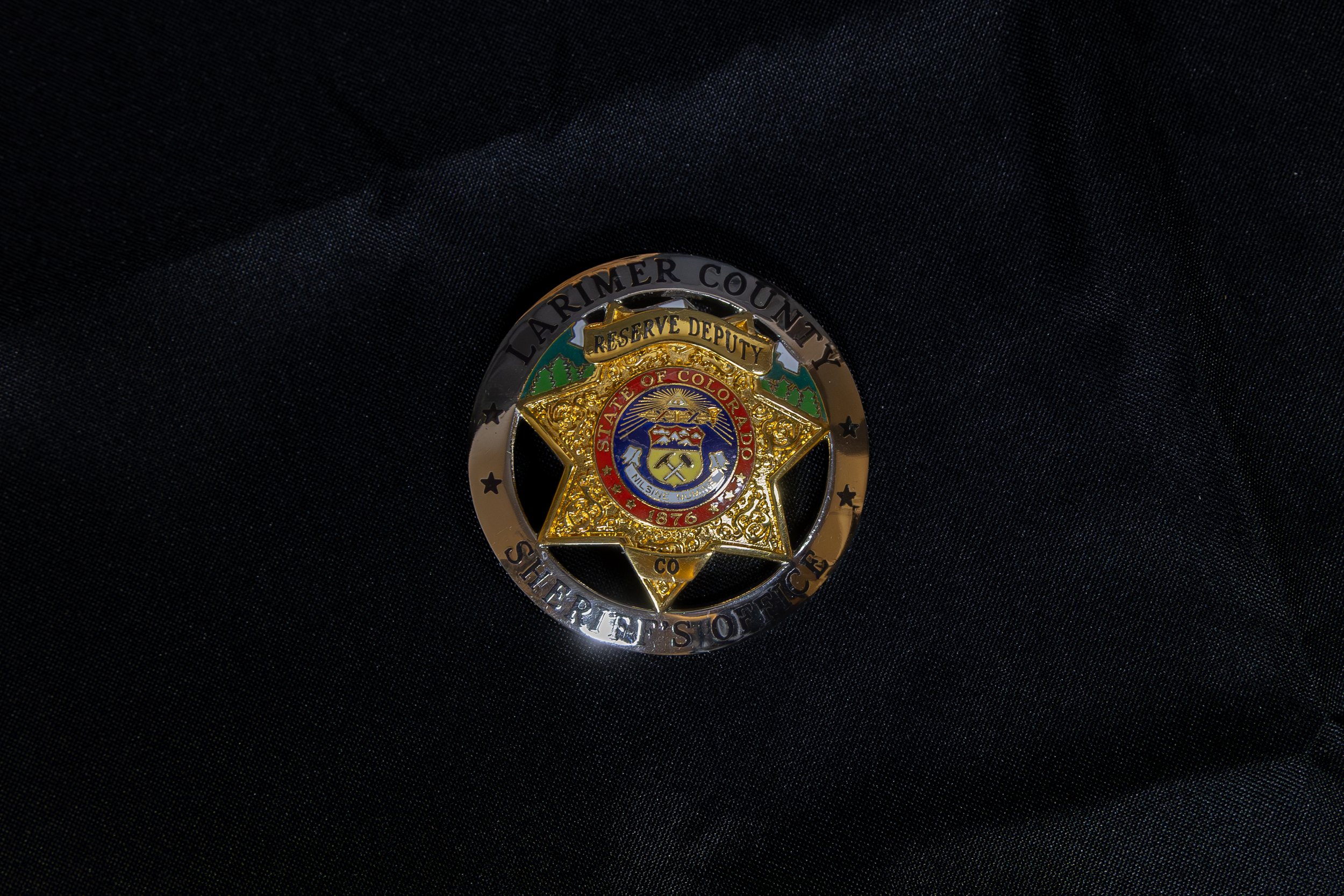 Larimer County Badge customizations include “Reserve Deputy”, “Deputy Sheriff”, “Corporal”, “Sergeant”, “Lieutenant”, “Captain”, “Sheriff” in the top banner. The bottom banner can be customized to show the badge number/officer number.
